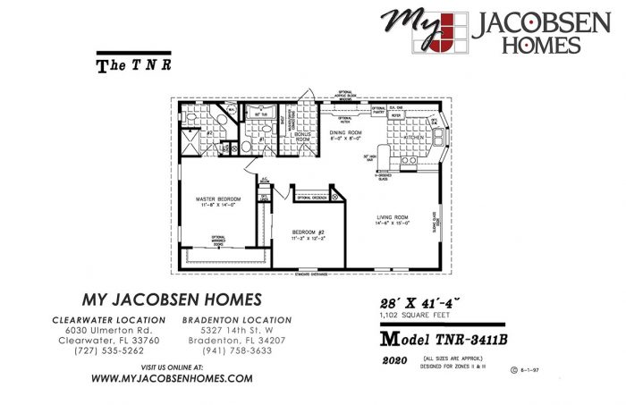 1102 SQ. FT. | 2 Bedroom | 2 Bath | 28′ x 41′ 4″