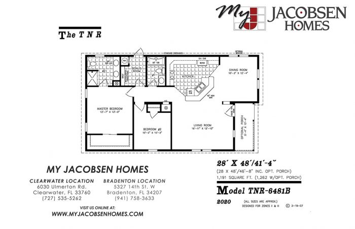 1280 SQ. FT. | 2 Bedroom | 2 Bath | 28′ X 48’/55′ with opt. potch